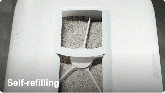 周末要外出嗎?讓Real Scooper處理貓砂。其頂部隔層可容納6公斤(13磅)的貓砂,當貓砂水平低時會自動補充。輕鬆為您的毛孩提供清新乾淨的貓砂床。