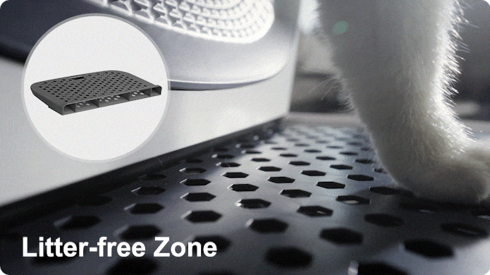 帶六角形漏砂孔的踏板不僅作為入口階梯,也可化身為落砂區,有效減少貓砂帶到家中四處。您也可貼上貓咪最愛的貓抓墊,讓它變成一塊玩耍的貓抓墊。